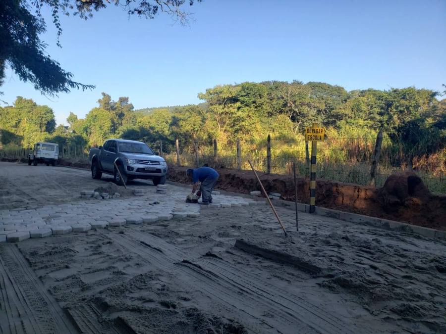 Calçamento em frente às Escolas Municipais Francisco Falcão e Rodolfina Zordan