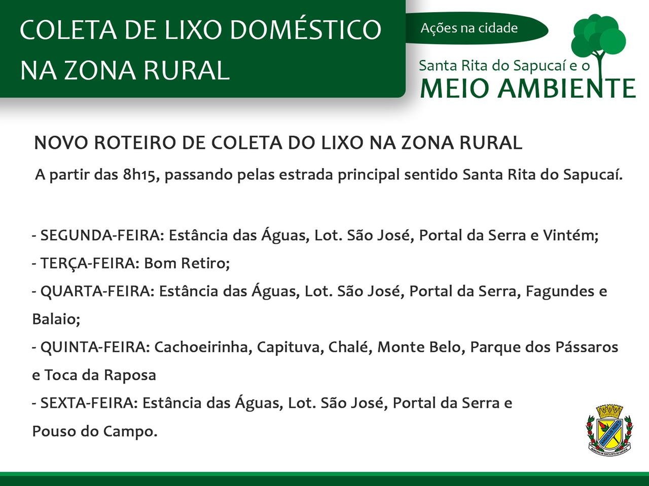 A realização deste projeto somente foi possível com o apoio de toda comunidade rural, e precisamos da atenção de todos no que diz respeito aos dias específicos para a coleta em cada região e também sobre o lixo que pode ser depositado para retirada.