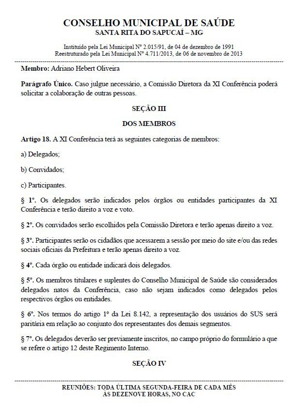 Conselho Municipal de Saúde e a Secretaria Municipal de Saúde promovem a XI Conferência Municipal de Saúde de Santa Rita do Sapucaí