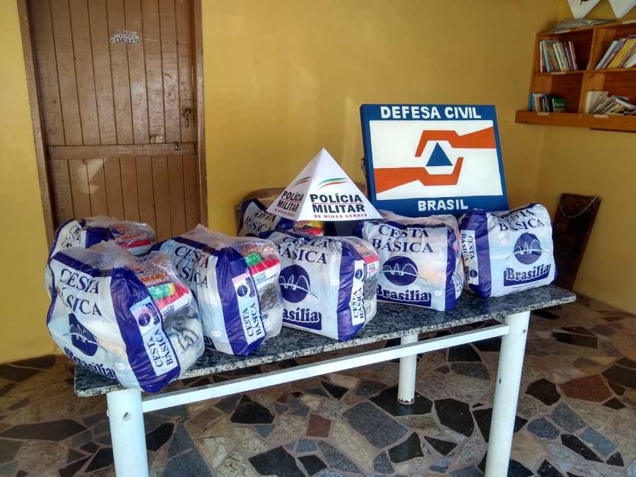 Polícia Militar em parceria com a Defesa Civil distribui cestas básicas em Ouro Fino