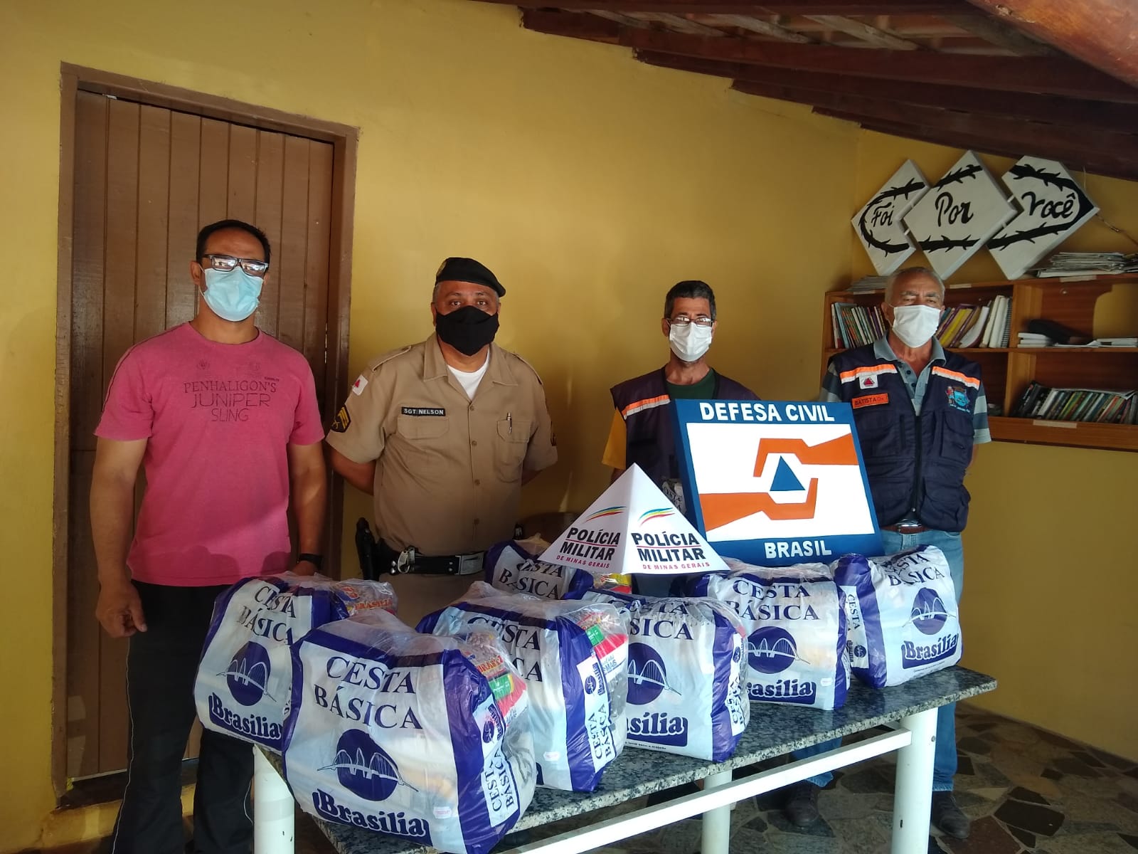 Polícia Militar em parceria com a Defesa Civil distribui cestas básicas em Ouro Fino