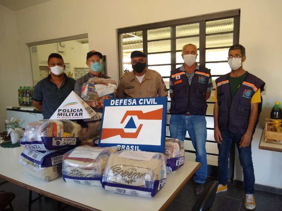 Polícia Militar em parceria com a Defesa Civil distribui cestas básicas em Ouro Fino