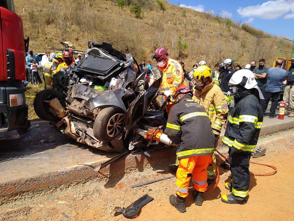 Grave acidente deixa dois mortos após carro ser prensado entre duas carretas