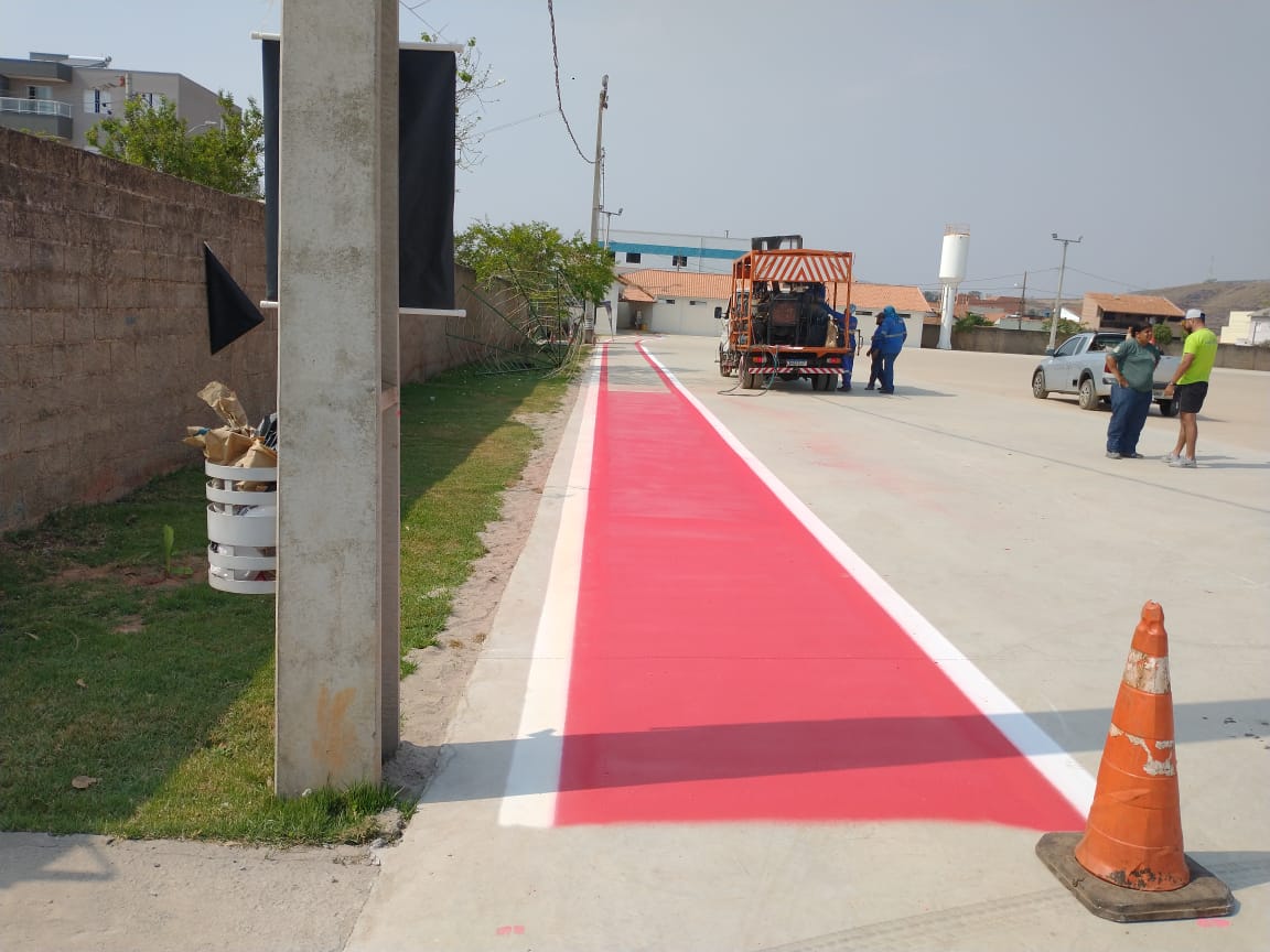 Pintura da sinalização no Centro Municipal de Exposições e Eventos