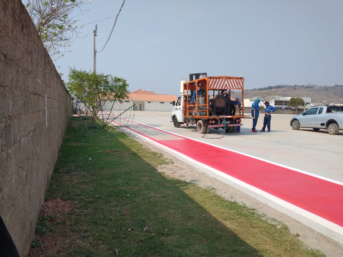 Pintura da sinalização no Centro Municipal de Exposições e Eventos