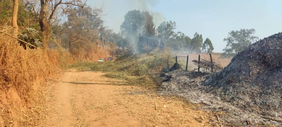 Fogo nas moitas de bambu na estrada para Balaio/Capituva