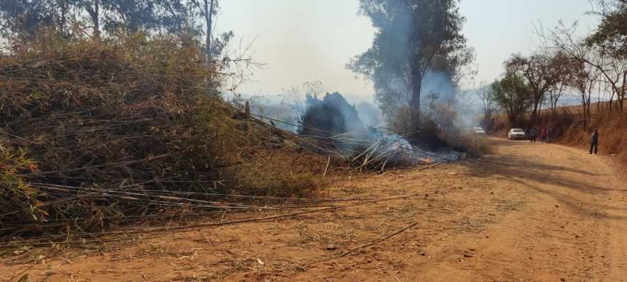 Fogo nas moitas de bambu na estrada para Balaio/Capituva