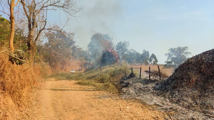 Fogo nas moitas de bambu na estrada para Balaio/Capituva
