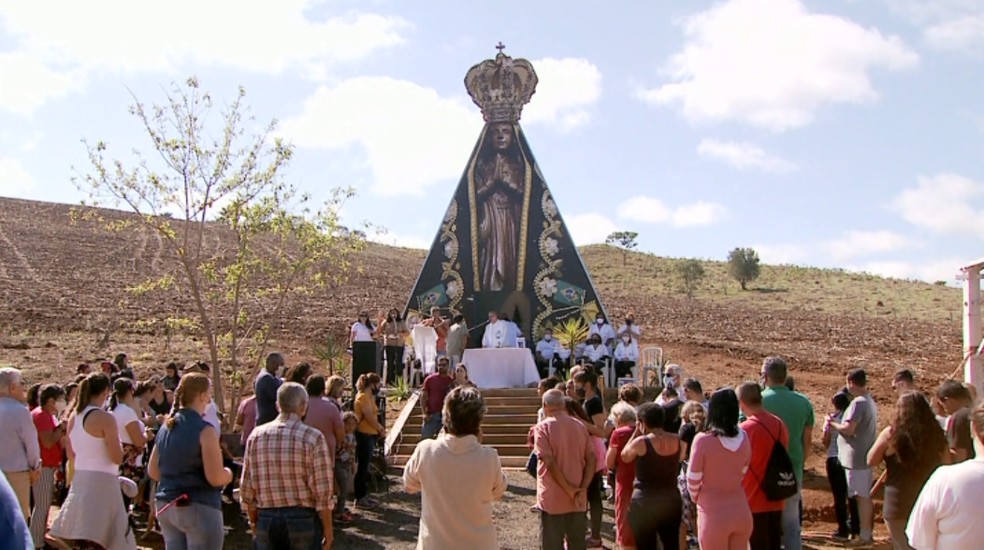 Uma capela com o formato de Nossa Senhora Aparecida recebeu a 1ª romaria e teve a celebração de uma missa inaugural em Ouro Fino nesta terça-feira(12), dia da padroeira do Brasil. O local foi construído por um empresário após ele atribuir a cura de um câncer a um milagre da santa.