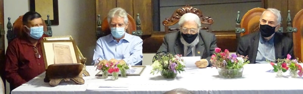 A partir da esq., Giácomo Constanti (representante do prefeito municipal), Ronaldo Carvalho – novo presidente da Alca, José Antônio Justino Ribeiro – presidente que deixa o cargo e José Francisco Rezek – membro correspondente da Academia.