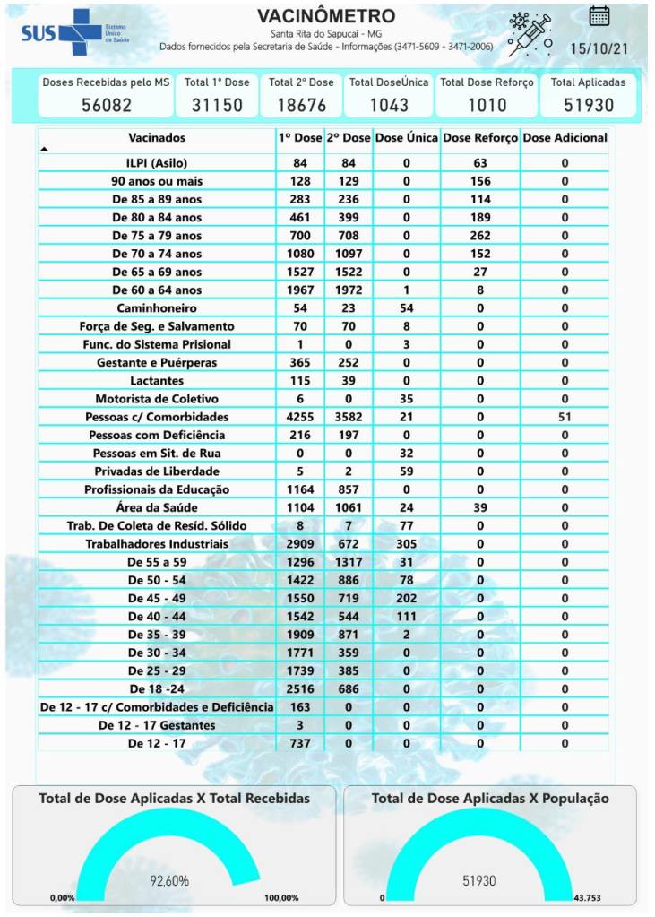 Boletim Epidemiológico de Santa Rita do Sapucaí, 15 de outubro de 2021