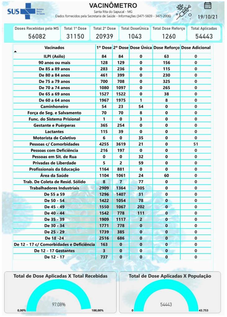 Boletim Epidemiológico de Santa Rita do Sapucaí, 19 de outubro de 2021