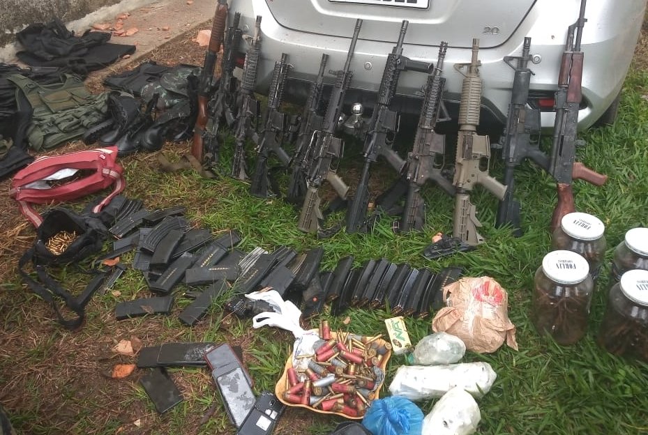 Pelo menos dez fuzis foram apreendidos, além uma escopeta calibre 12.