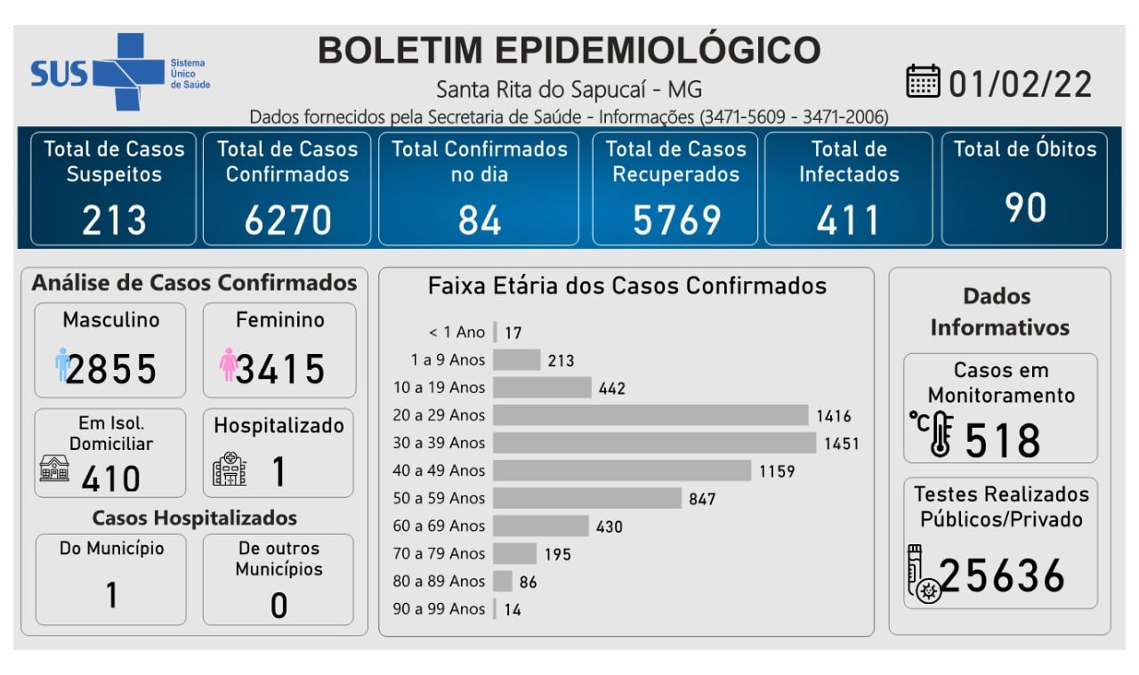 Boletim Epidemiológico de Santa Rita do Sapucaí, 01 de fevereiro de 2022