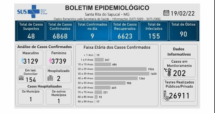 Boletim Epidemiológico de Santa Rita do Sapucaí, 19 de fevereiro de 2022