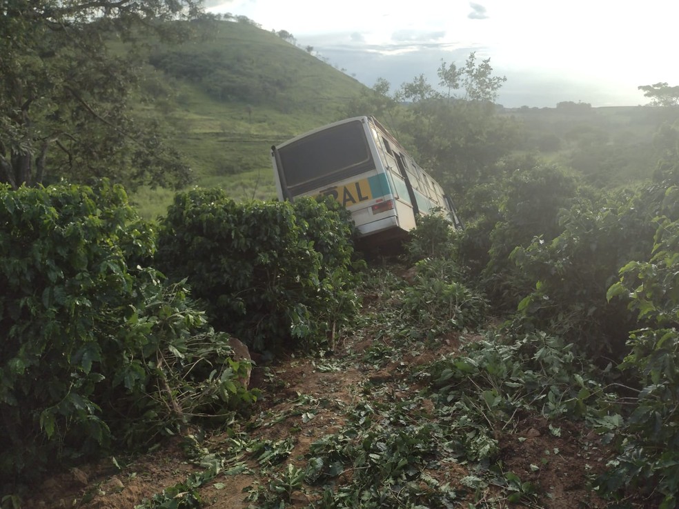 Ônibus com trabalhadores rurais cai em ribanceira na BR-491 e deixa três pessoas feridas