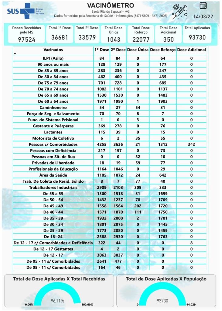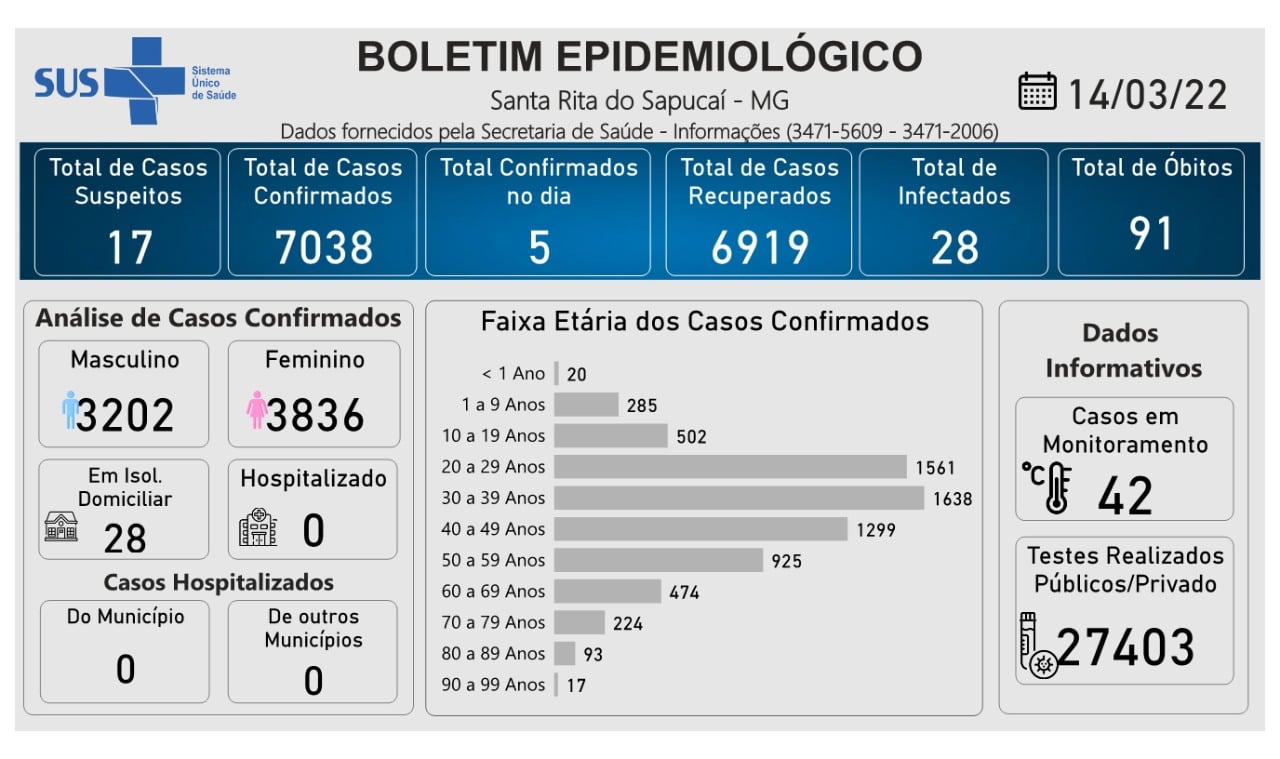 Boletim Epidemiológico de Santa Rita do Sapucaí, 14 de março de 2022