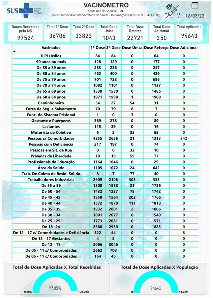 Boletim Epidemiológico de Santa Rita do Sapucaí, 16 de março de 2022