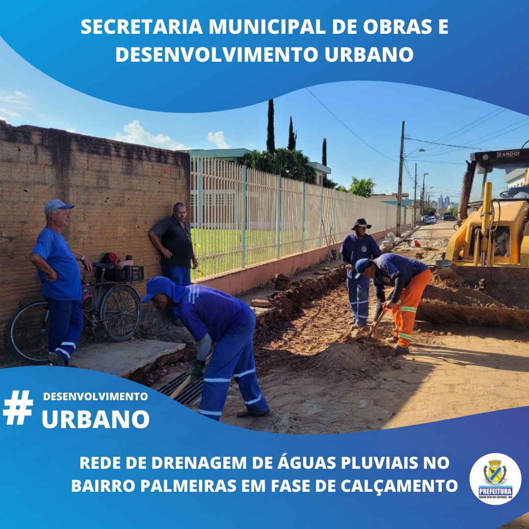 Rede de drenagem de águas pluviais no bairro Palmeiras em fase de calçamento