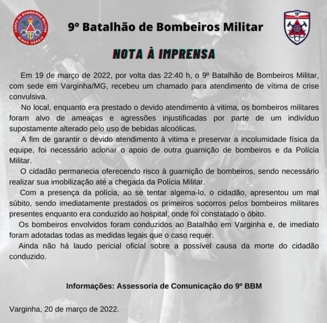 9º Batalhão de Bombeiros Militar – Nora à Imprensa