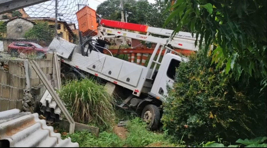 Caminhão desgovernado derruba muro e invade casa em Poços de Caldas