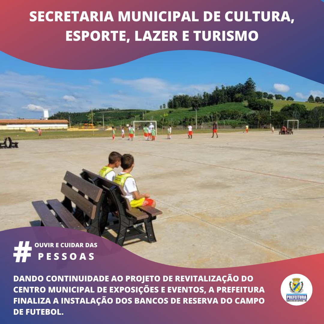 Dando continuidade ao projeto de revitalização do Centro Municipal de Exposições e Eventos, a prefeitura finaliza a instalação dos bancos de reserva do campo de futebol