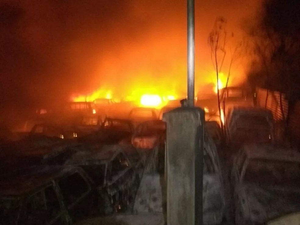 Incêndio em estacionamento do Detran deixa 80 motos e 120 carros queimados em Alfenas