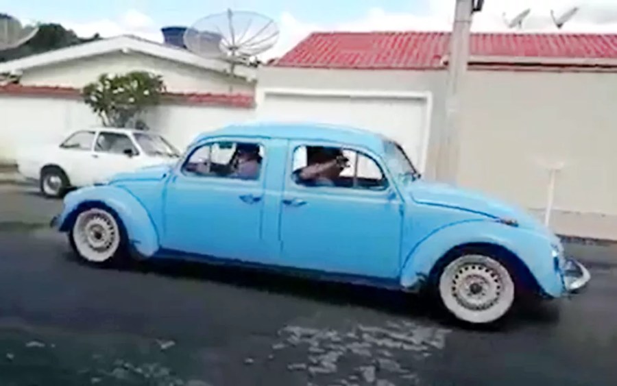 Fusca com duas frentes chama atenção nas redes sociais; carro foi montado em Poços de Caldas