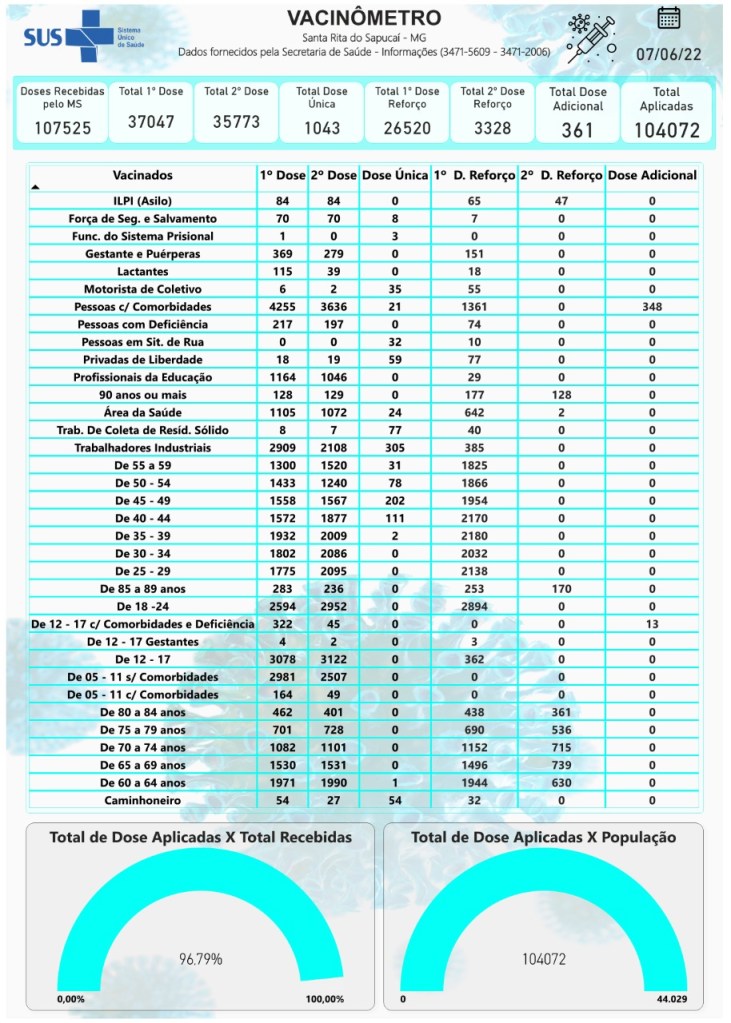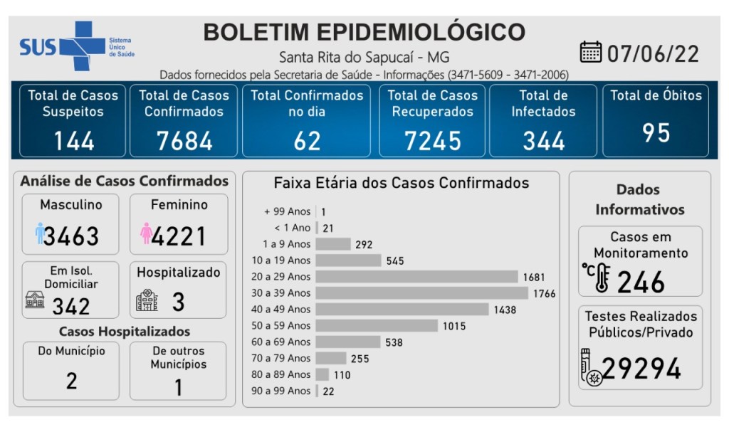 Boletim Epidemiológico de Santa Rita do Sapucaí, 07 de junho de 2022