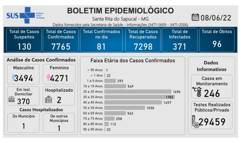 Boletim Epidemiológico de Santa Rita do Sapucaí, 08 de junho de 2022