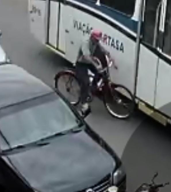Imagens mostram que a vítima trafegava pelo local quando se desequilibrou ao passar próximo de um carro estacionado na via, perdendo o controle e atingindo a lateral do ônibus. Com o impacto, o homem foi arremessado ao chão e ficou inconsciente.