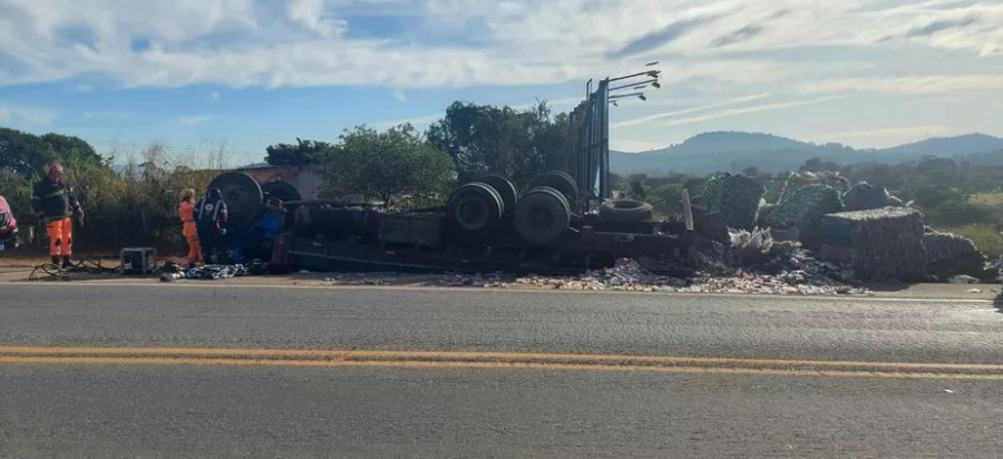 Homem morre após caminhão que transportava garrafas pet capotar na BR-459