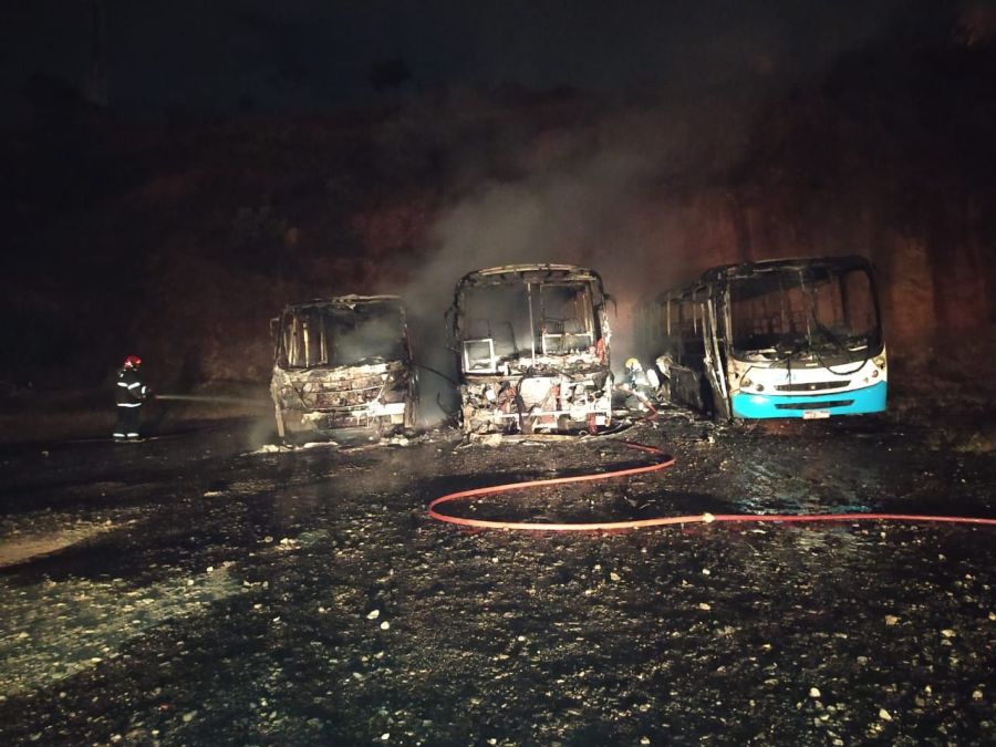Incêndio destrói três ônibus em garagem de empresa de transporte rodoviário