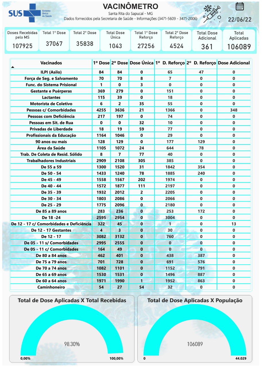 Boletim Epidemiológico de Santa Rita do Sapucaí, 23 de junho de 2022