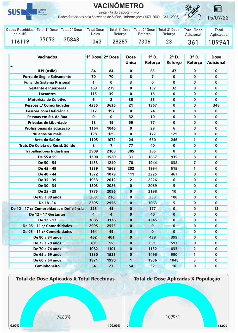Boletim Epidemiológico de Santa Rita do Sapucaí, 15 de julho de 2022