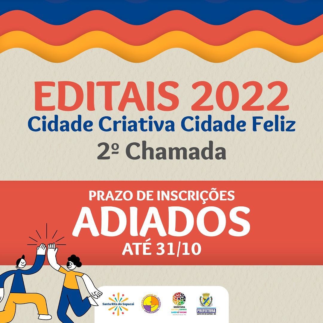 Agora você ganhou um prazo maior para se inscrever nos EDITAIS 2022 CIDADE CRIATIVA, CIDADE FELIZ – 2ª CHAMADA.