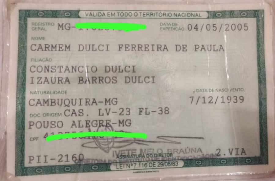 RG encontrado – Carmem Dulci Ferreira de Paula