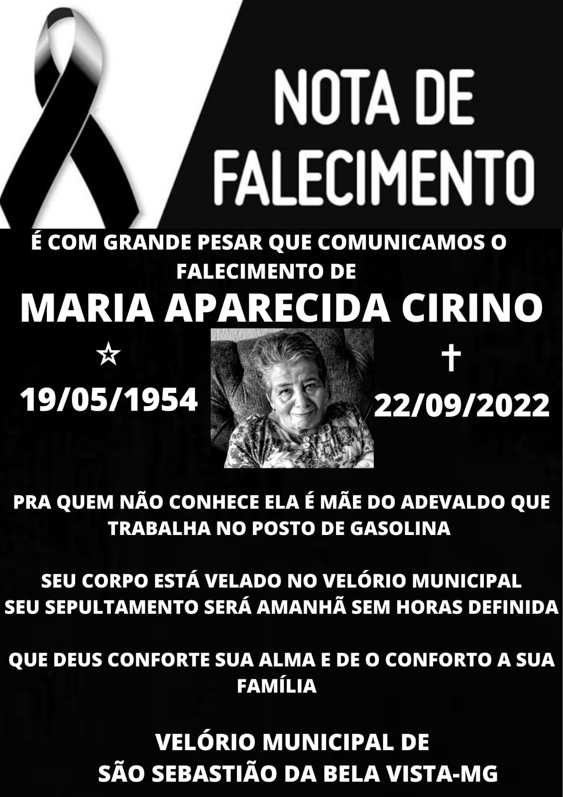 NOTA DE FALECIMENTO – Maria Aparecida Cirino