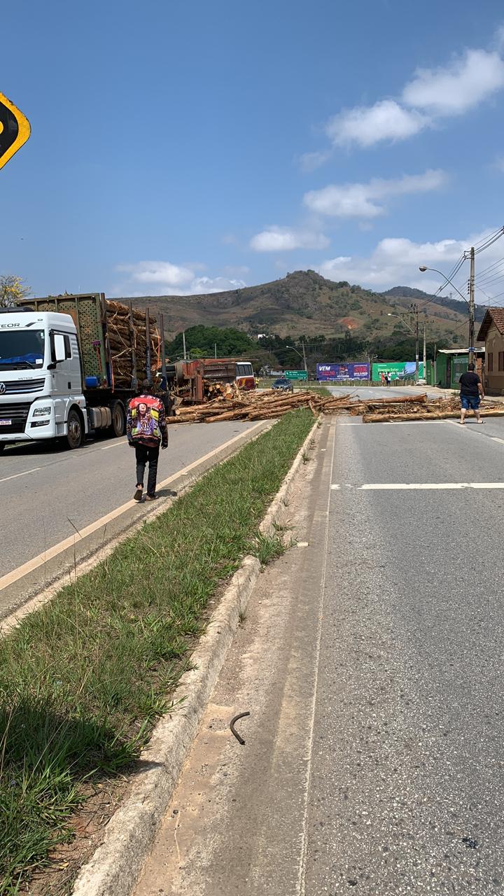 Parte de carga de carreta bitrem cai na BR 459