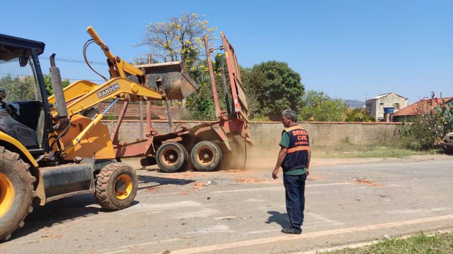 Parte de carga de carreta bitrem cai na BR 459