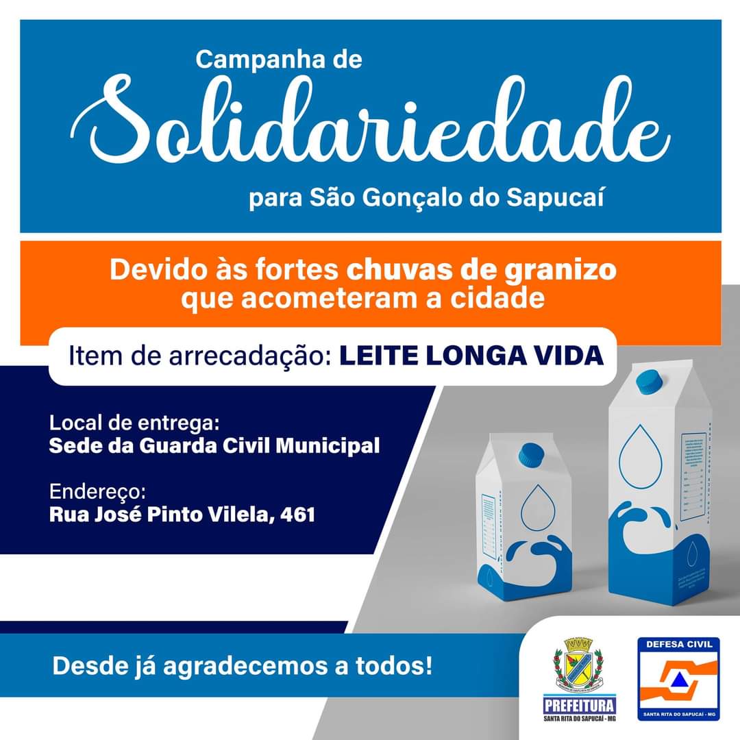 A campanha de arrecadação continua e as doações de LEITE LONGA VIDA podem ser feitas na Sede da Guarda Civil Municipal, Rua Dr José Pinto Vilela, 461 e no Sicoob Credivass na Alameda José Cleto Duarte, 85 Centro.