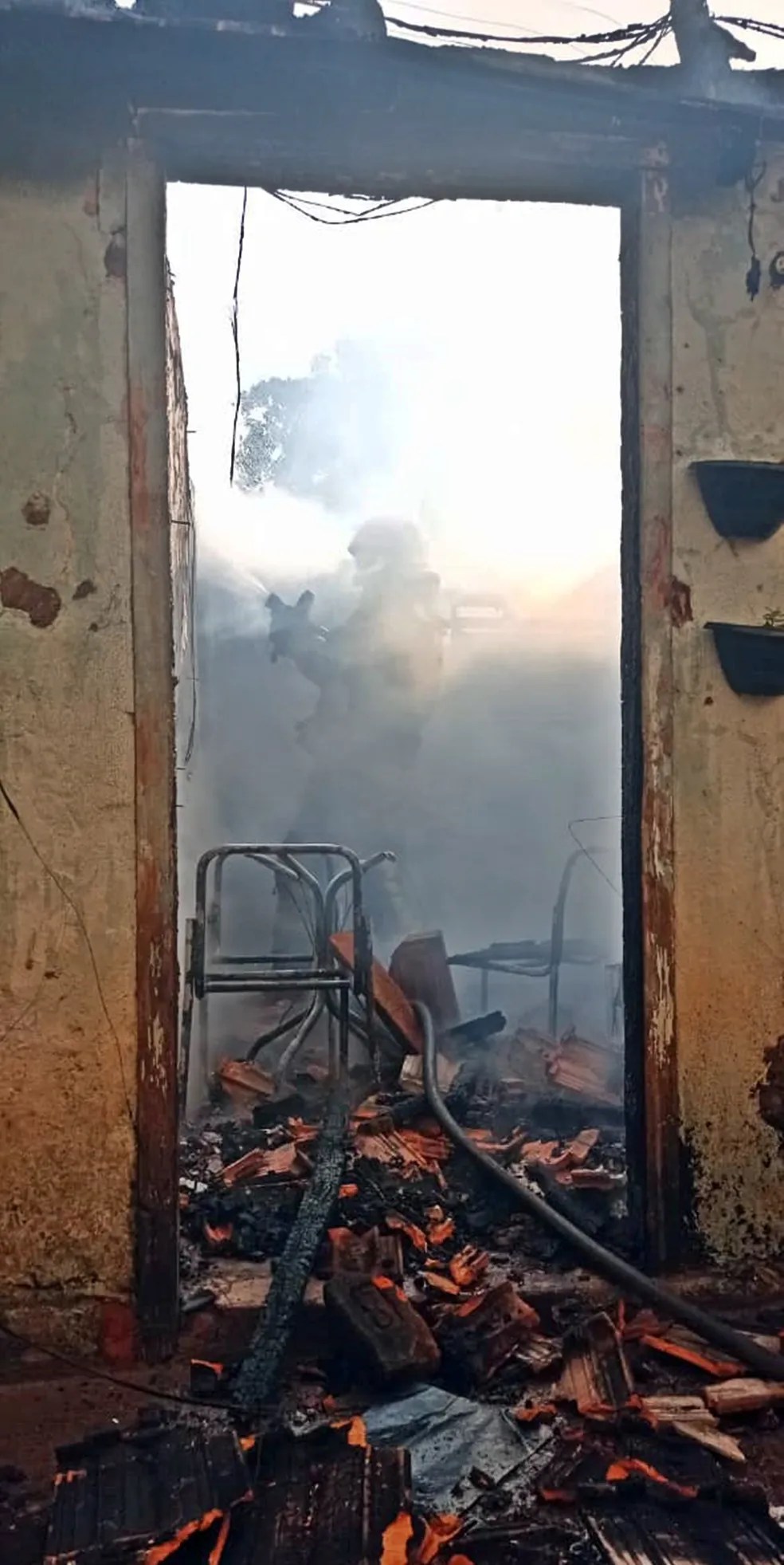 Bombeiros salvam pai com três filhos e cachorro de incêndio em residência em Varginha