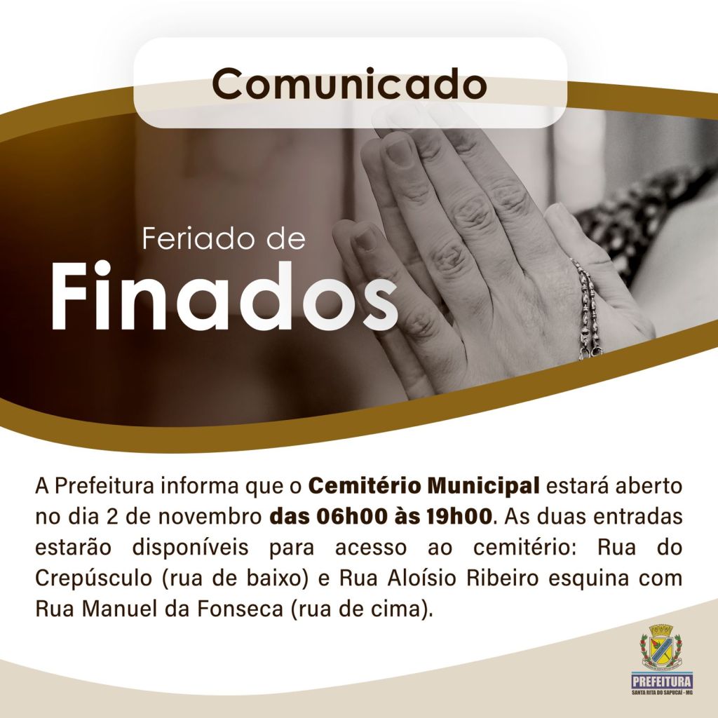 Feriado de Finados – Cemitério ficará aberto das 6h00 às 19h00