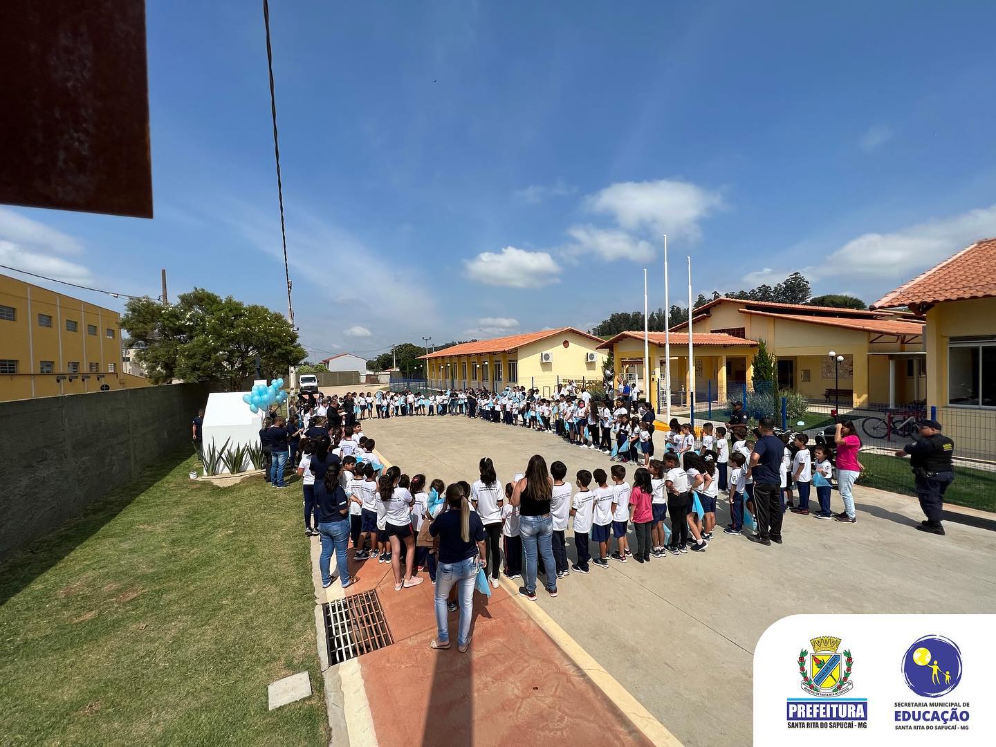 Crianças e professores da rede municipal de Educação participam da reinauguração da Gruta Nossa Senhora de Fátima no Centro de Eventos