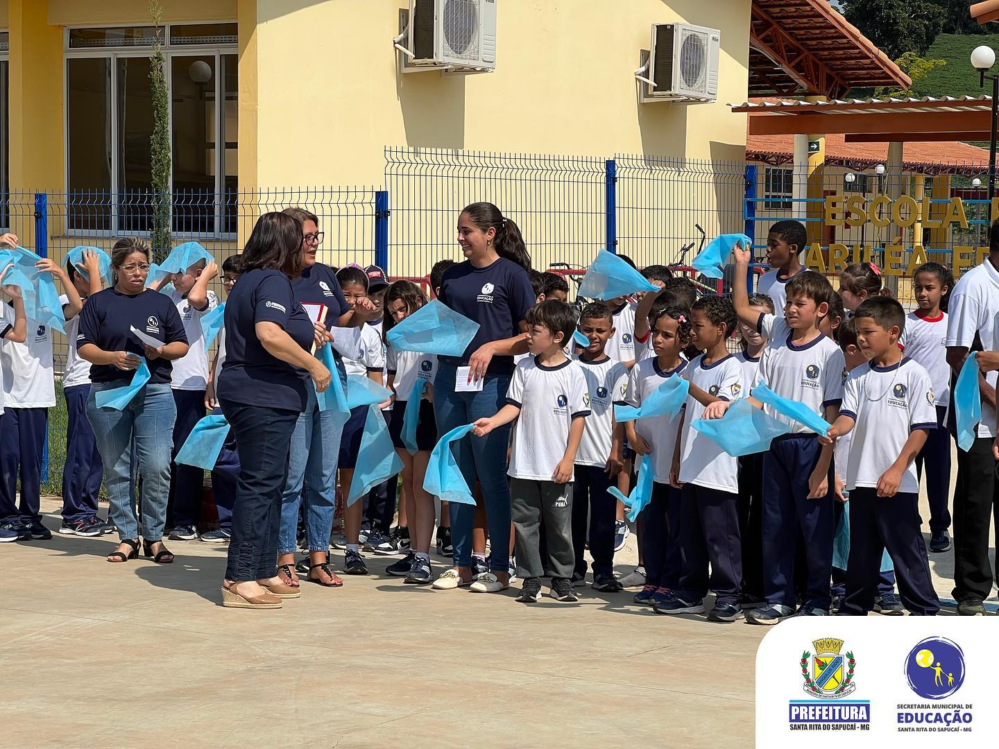 Crianças e professores da rede municipal de Educação participam da reinauguração da Gruta Nossa Senhora de Fátima no Centro de Eventos
