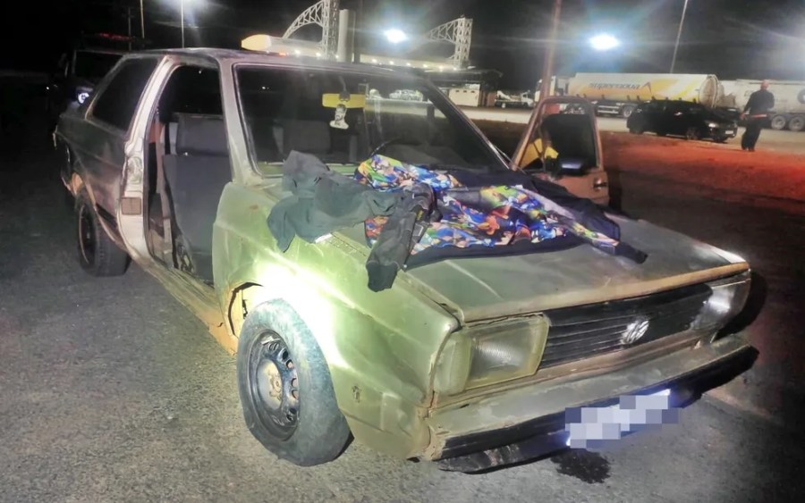 Ladrão usa carro sem porta para assaltar, leva tombo com dinheiro roubado e é preso em matagal