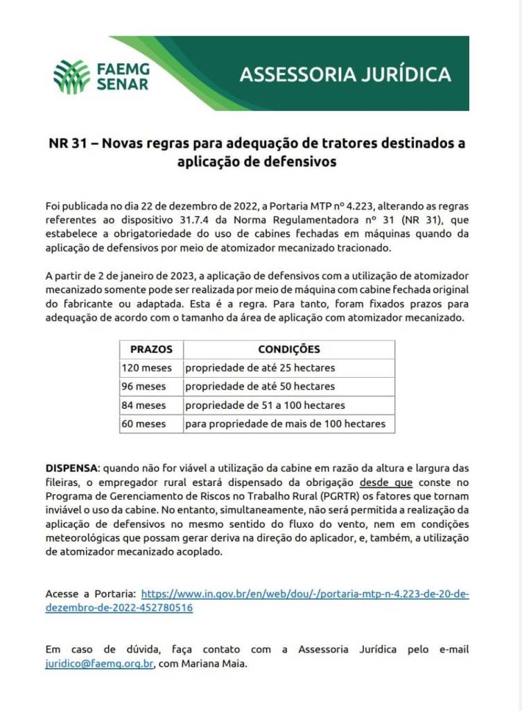 NR 31- Novas regras para adequação de tratores destinados a aplicação de defensivos