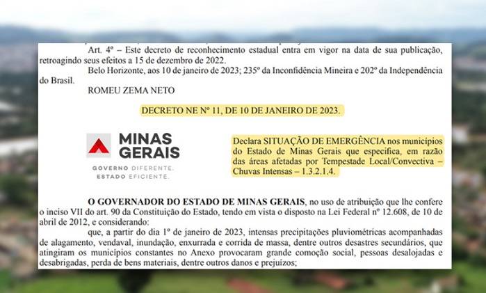 Entre os municípios está Pouso Alegre, que foi inserido na listagem por meio do Decreto Nº11, de 10 de janeiro de 2023.