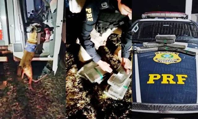 Com a ajuda dos cães farejadores da PRF, os policiais localizaram os tabletes de cocaína escondidos sob o banco dianteiro do motorista.