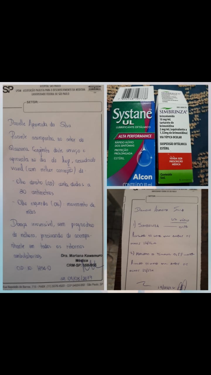 Estou precisando da ajuda de vocês para comprar meus colírios. Gente, é uma doença incurável por isso não posso ficar sem os colírios.